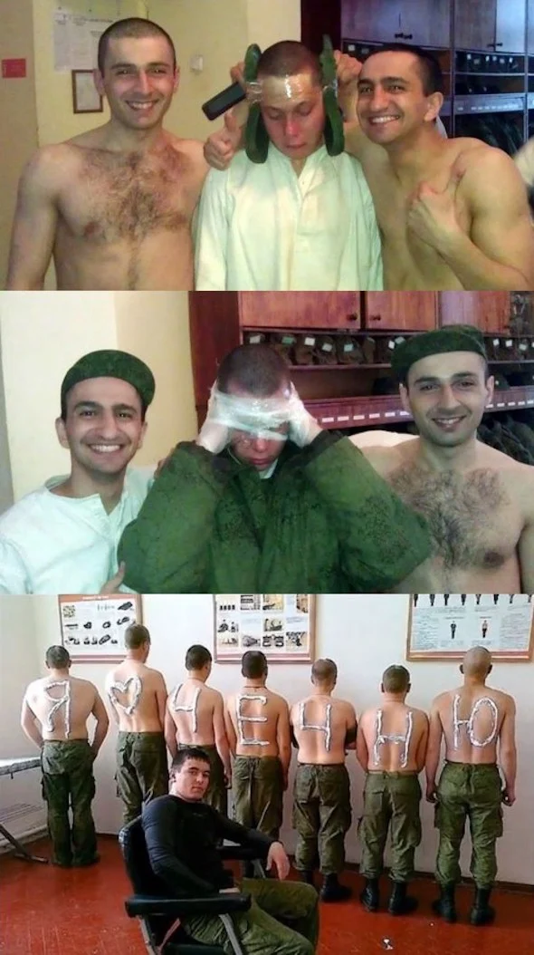 В отличие от кавказцев, русские, как всегда, атомизированы. Не-солидарны. Скорее сами будут издеваться над младшим призывом, чем помогут кому-то при беспределе нацменьшинств. Офицеры тоже ведут себя как когда-то в царской армии. "Собакам и низшим чинам вход воспрещен" висели таблички в парках Кронштадта и Петербурга, т.е. офицеры вроде как не считали себя и низшие сословия одной нацией. Потом, конечно, матросы без сожалений топили их благородия в Финском заливе и резали на куски в 1917, но что изменилось?
