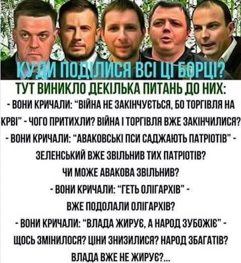 куда пропали все борцуны с коррупцией? и прочих тяхнобоков, семенчеко,парасюков и остальных свинособак их уже нету?